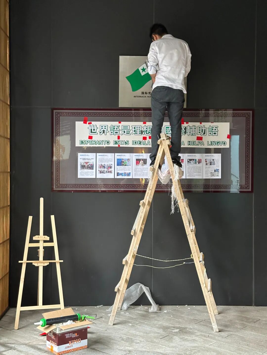 2023年9月16日,重庆市世界语协会在重庆国际商务区天地湖公园设立“国际世界语之窗”,并举行了挂牌仪式。重庆市世界语协会理事长袁爱林、副理事长兼秘书长赵德智向业主萧自斐董事长授牌,重庆世协会员龚银碧、毛晓莉、陈昌海、谢淩霞、王建文、曾生泉、谢全瑜、陶红等参加了活动。